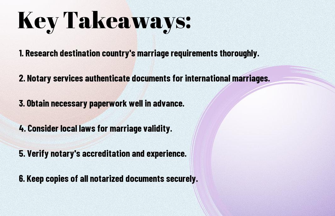 You may be considering a wedding in a beautiful foreign locale, but navigating the legalities can be daunting. This complete guide will provide you with vital information on notary services for marriages abroad, ensuring that your special day goes off without a hitch. From document requirements to the role of notaries in foreign countries, you’ll learn everything you need to know to make your dream wedding an enjoyable and legally binding experience. Equip yourself with the knowledge to maneuver through the global marriage landscape confidently.