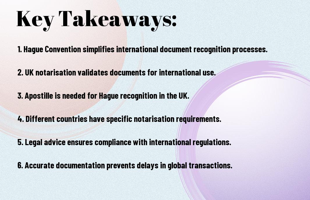 You may find yourself needing to understand the legal frameworks that govern international document recognition, specifically through the Hague Convention and UK notarisation practices. This blog post will guide you through the intricacies of the Hague Convention, which facilitates the international recognition of public documents, and how UK notaries play a pivotal role in this process. By grasping these concepts, you will be better equipped to navigate the complexities of legal documentation, ensuring your documents are valid across borders.